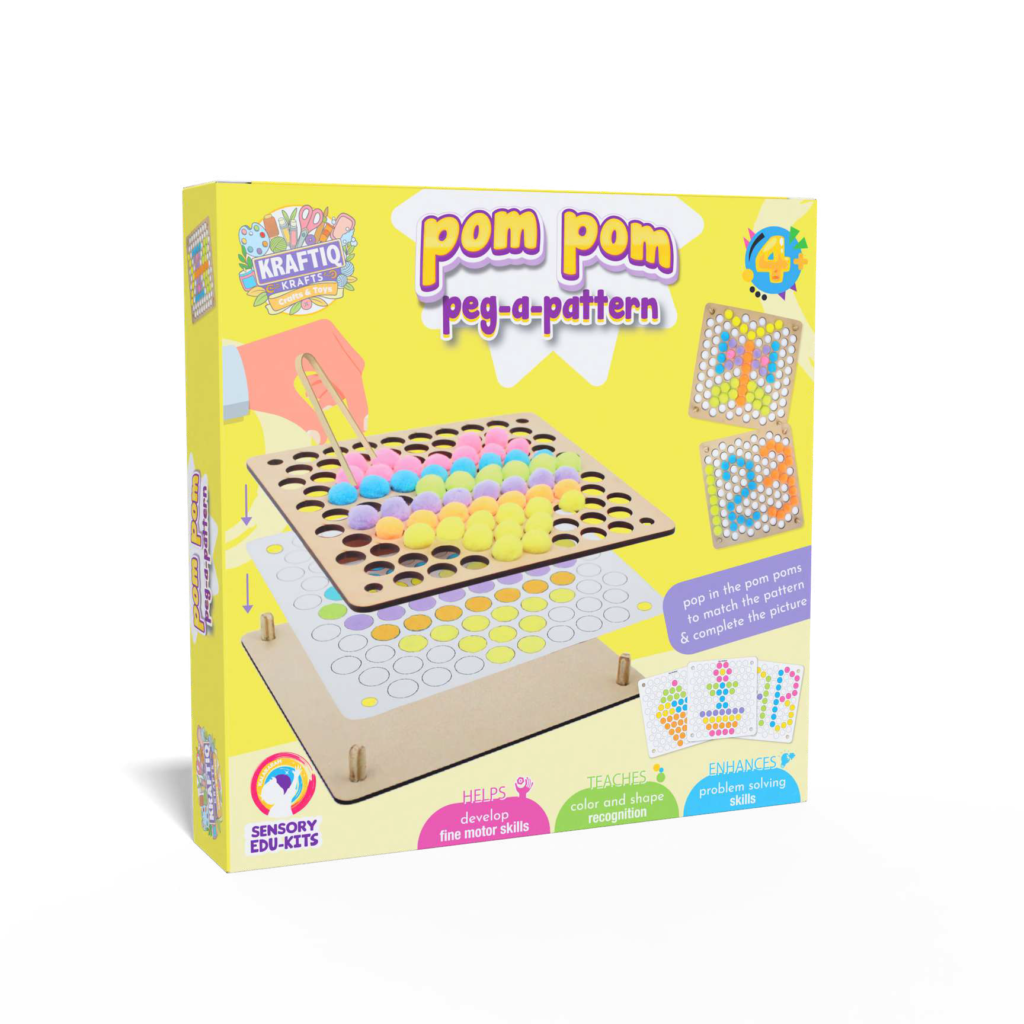 Pop in the pom poms to match the pattern and complete the picture.