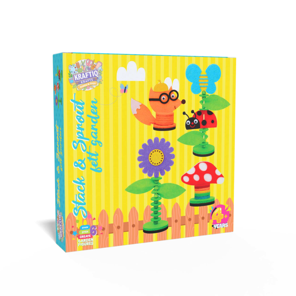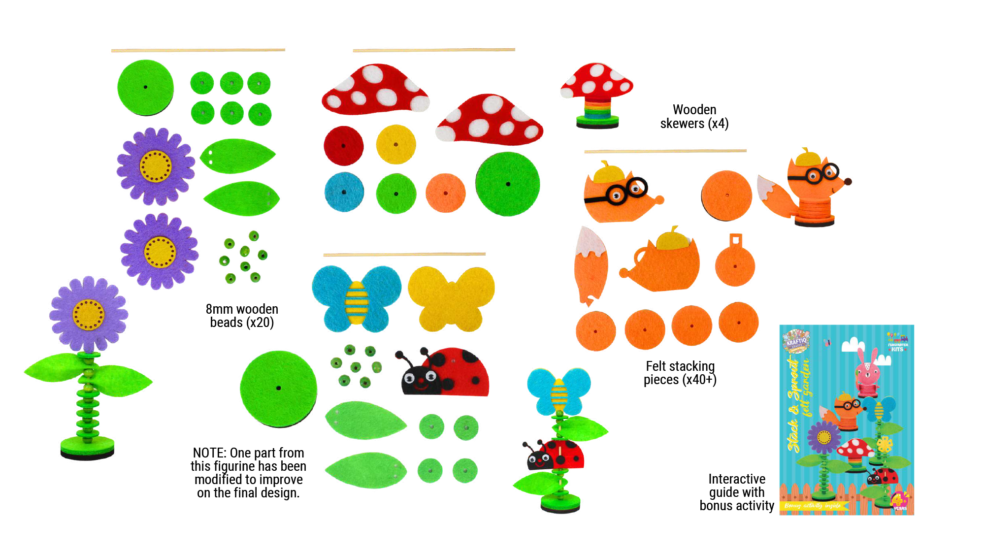 Stack & stick colored felt cutouts to make 4 delightful felt stacked garden figures.