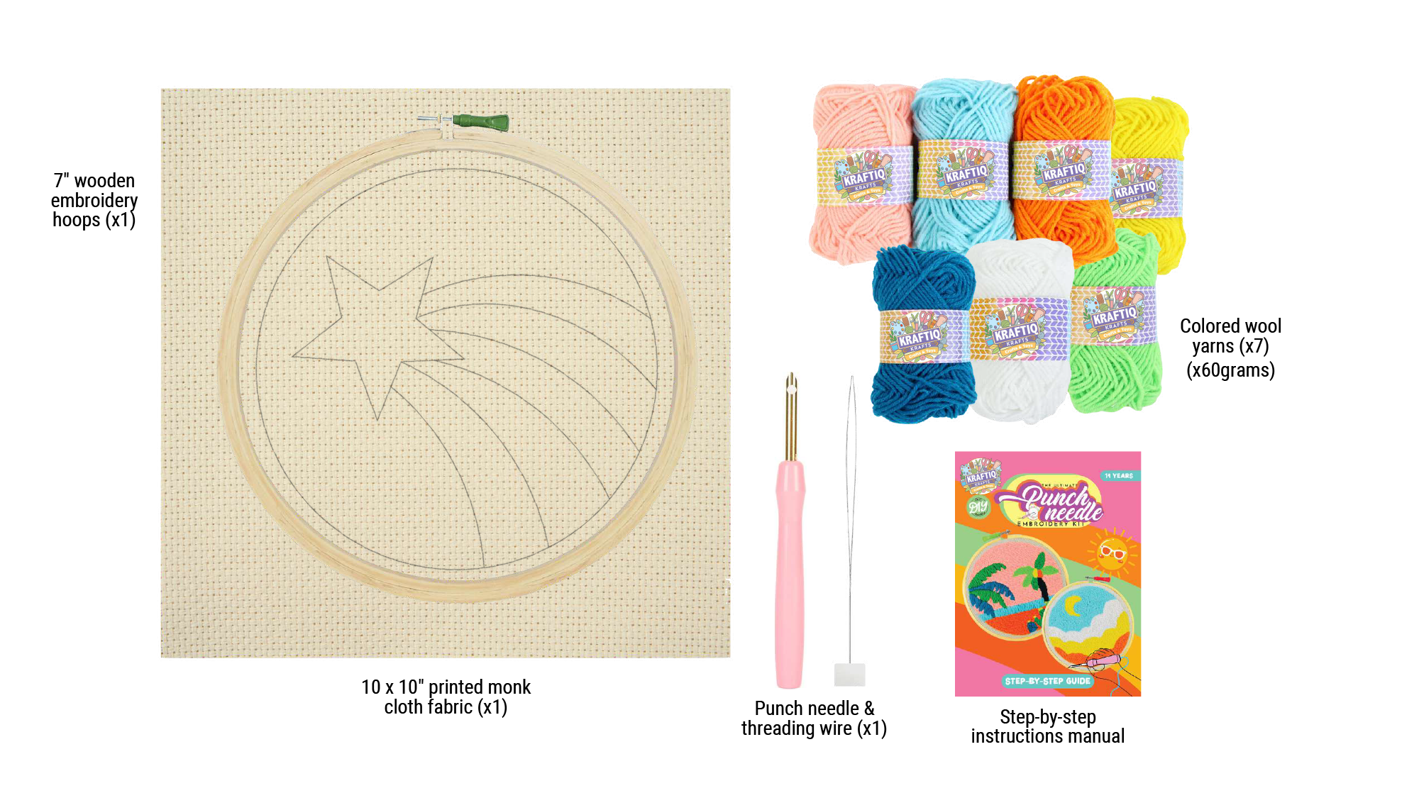 Make 1 vivacious punch needle embroidery designs with the contents of this kit.