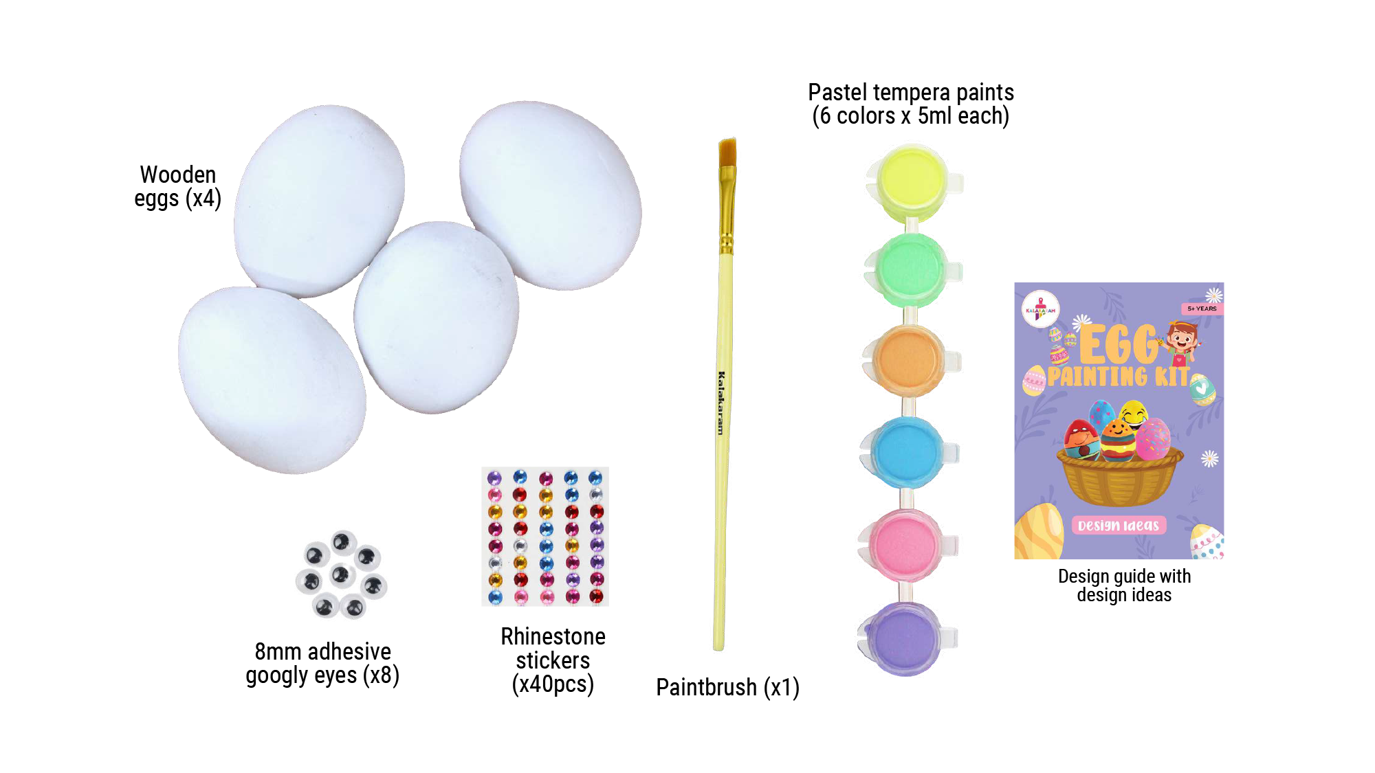 Paint & decorate a set of 4 wooden eggs to make beautiful patterns & characters.
