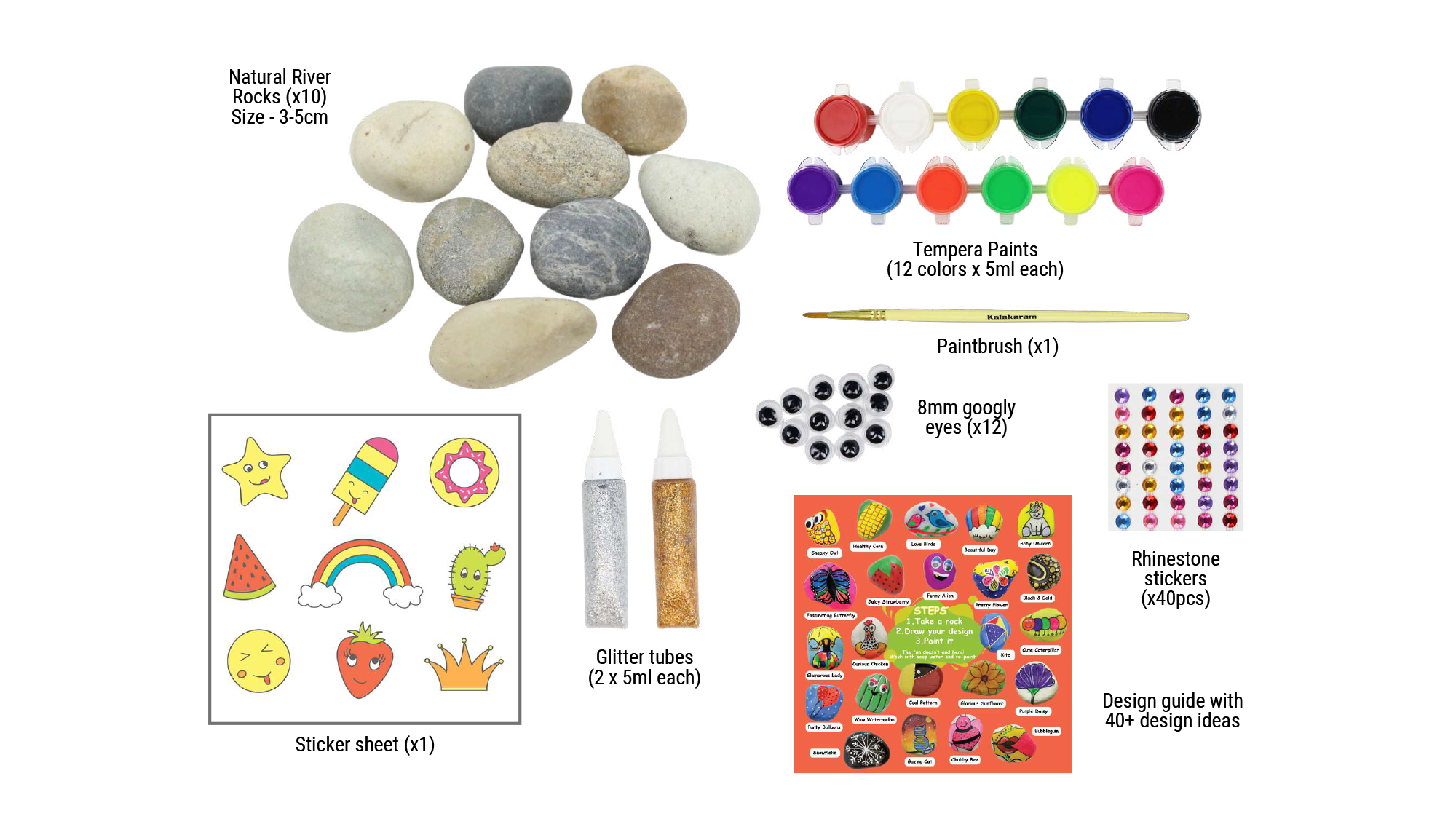 Paint, wash & re-paint 10 natural rocks to make fun designs & characters.