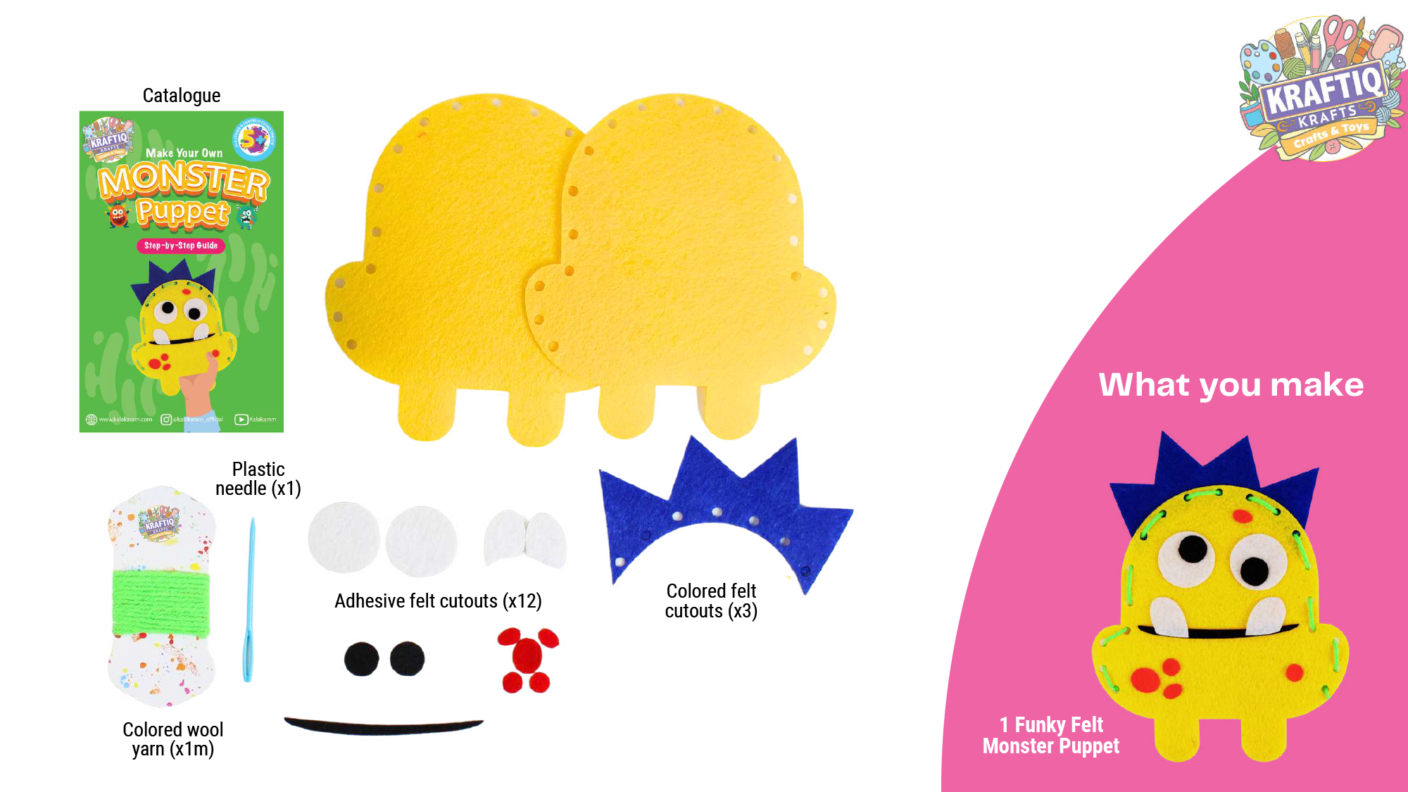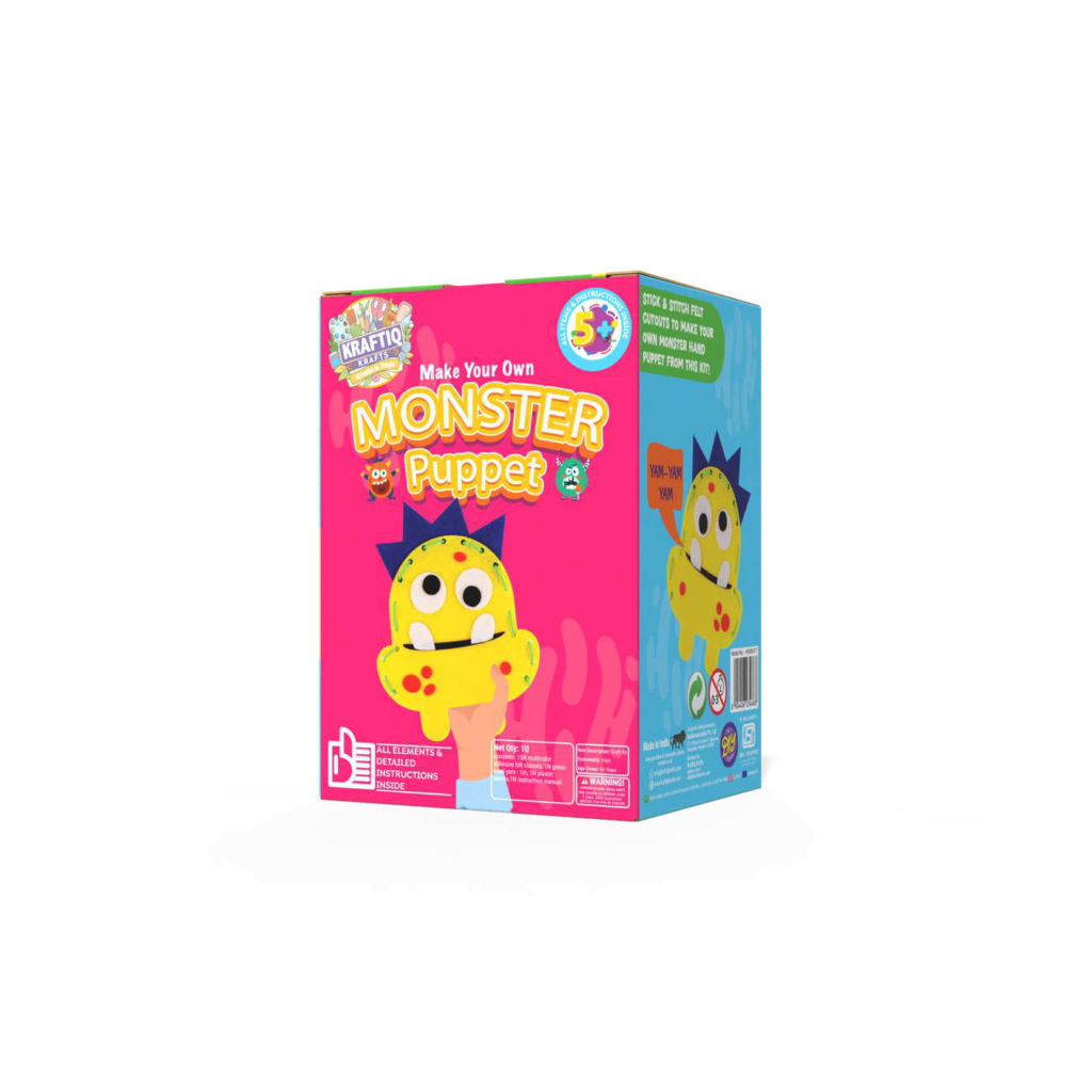 Stitch & stick felt cutouts to make your own monster hand puppet from this kit.