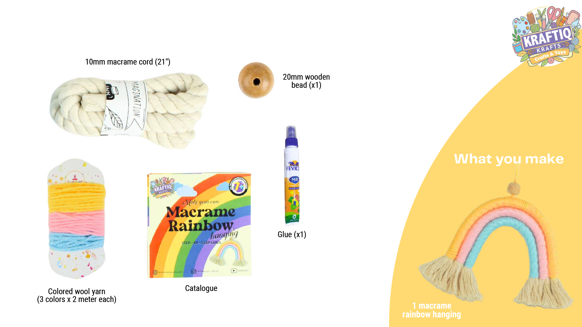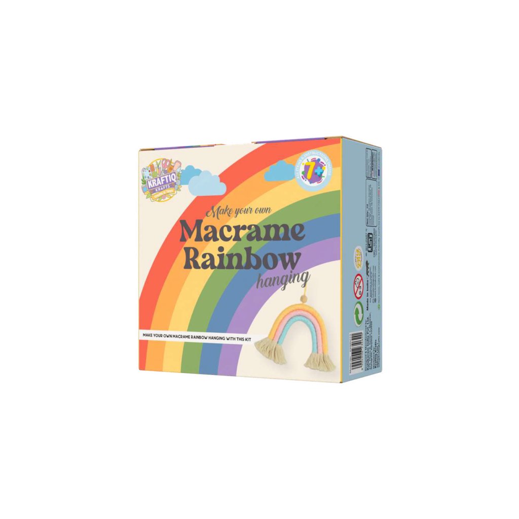 Make your own macrame rainbow hanging with this kit.