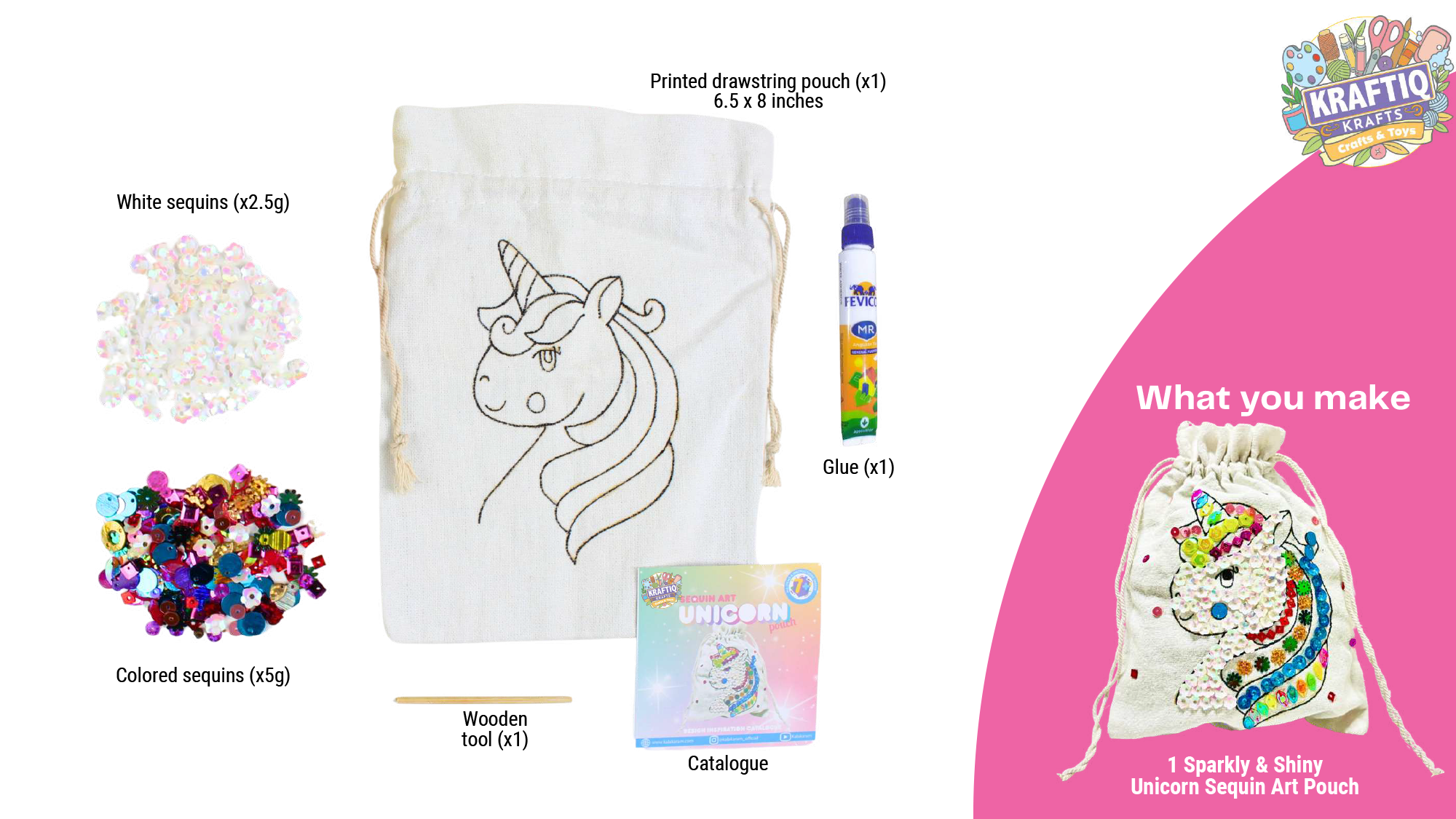 Make your own mystical sequin art pouch with the contents of this kit.
