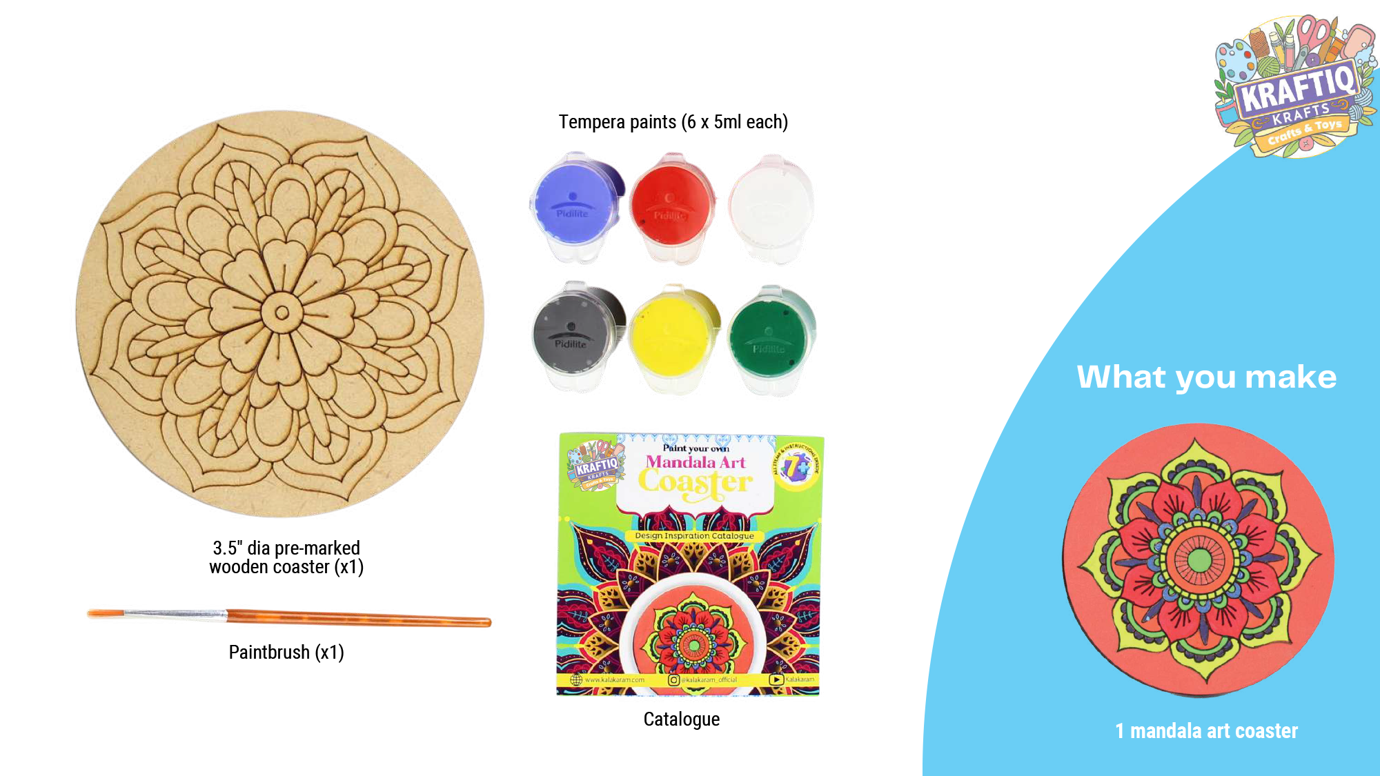 Paint your own pre-marked wooden mandala art coaster with this kit.
