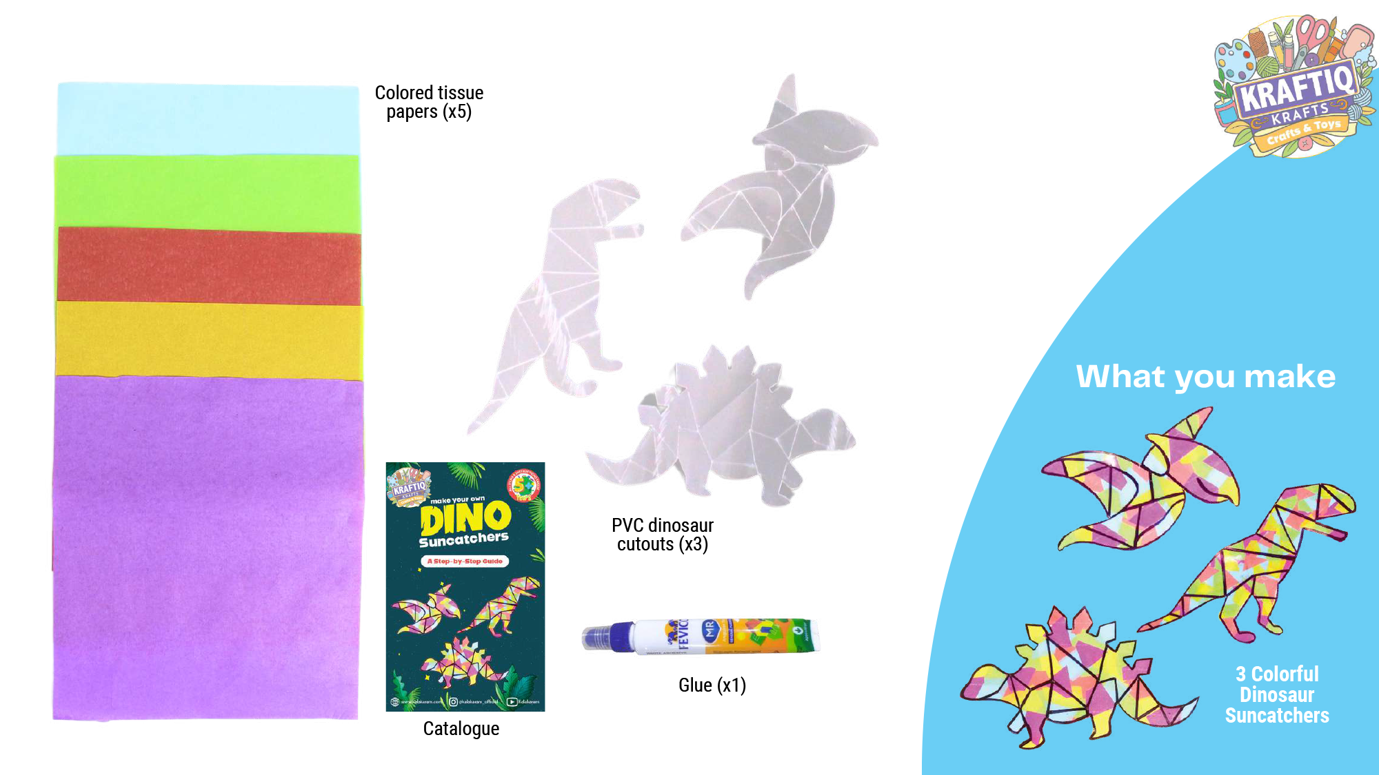 Tear & paste tissue paper to make 3 dinosaur suncatchers from this kit.