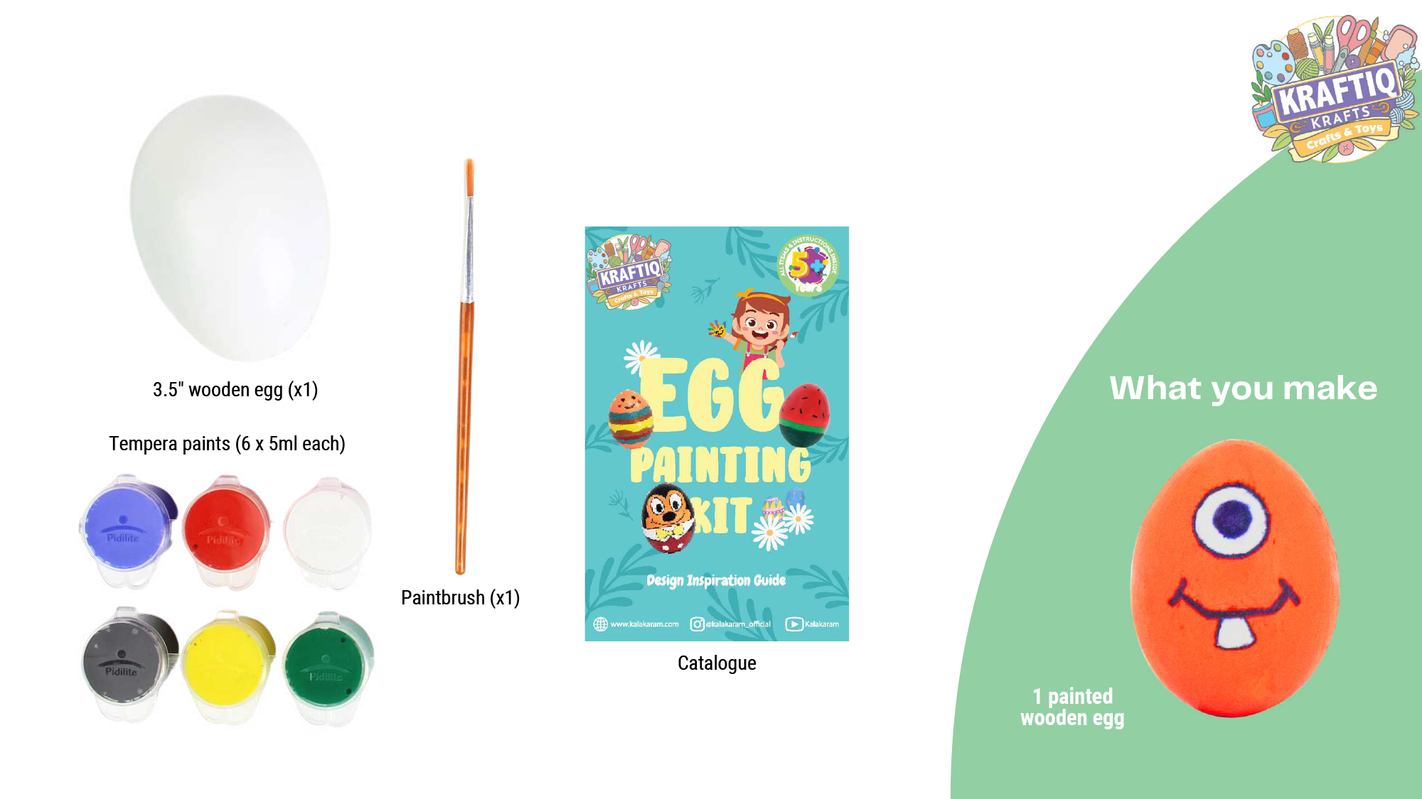 Paint a wooden egg to make fun patterns & characters with the contents of this kit.