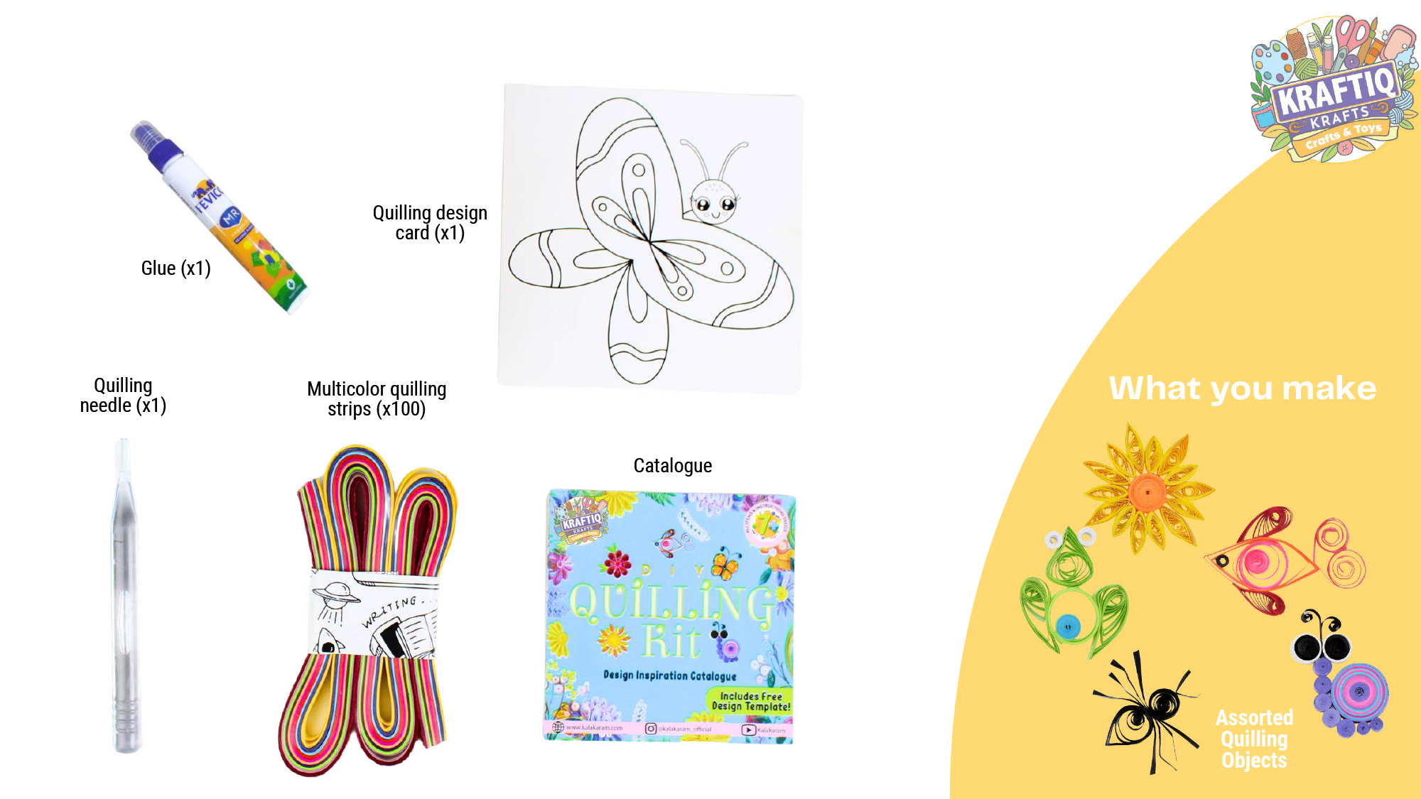 A set of quilling needle & colorful quilling strips to make splendid quilling objects.