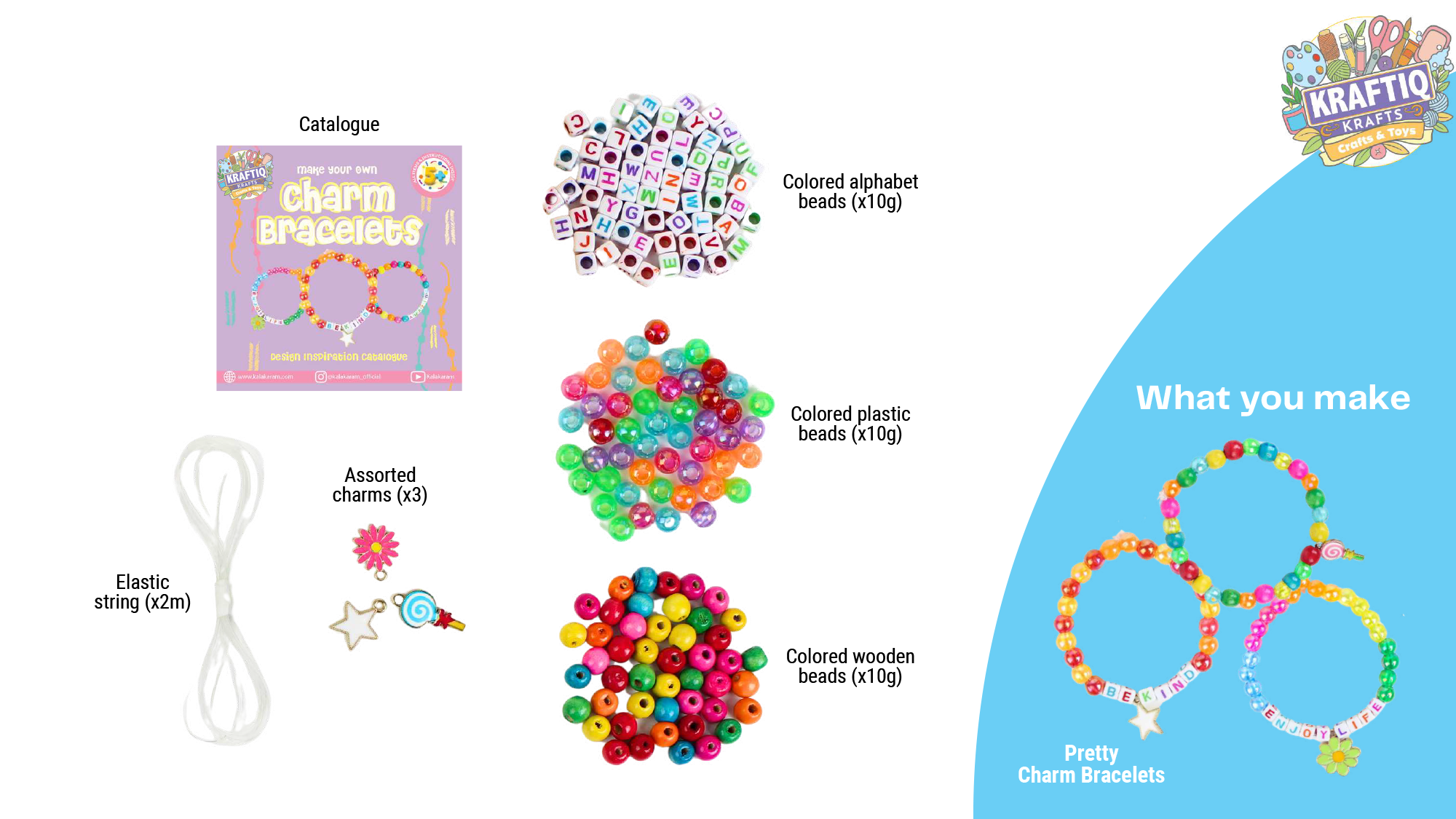 Make your own special bracelets with colorful assortment of beads & pretty charms.