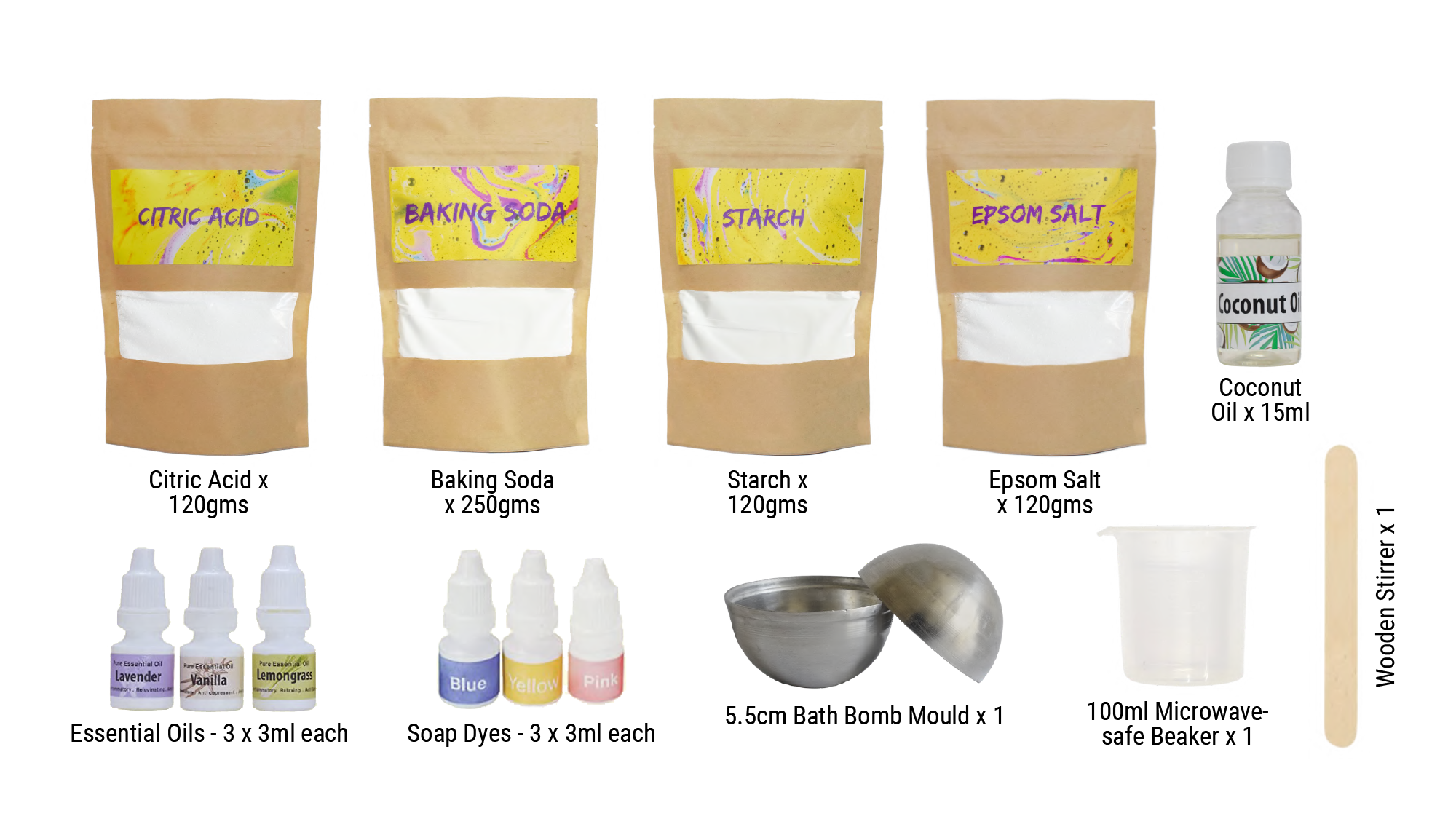 Make 3 fizzy and colorful bath bombs with the goodness of pure essential oils.
